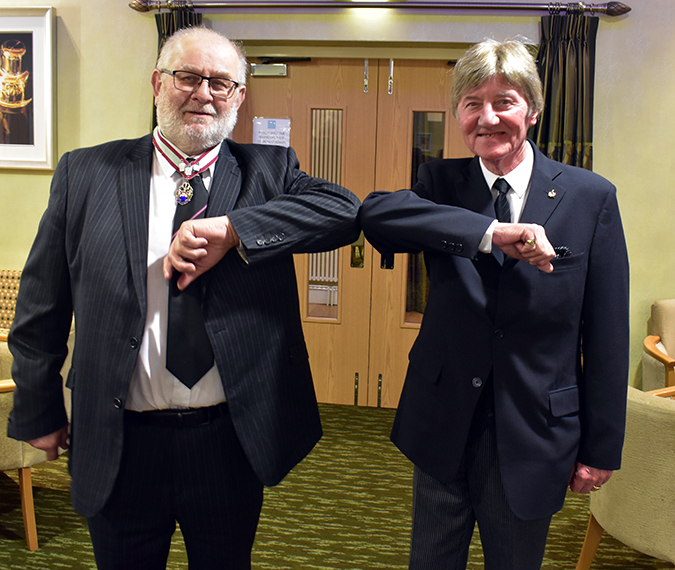 Ian Henderson and Norman Guy demonstrating the Coronavirus greeting method! |