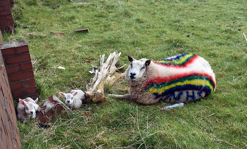 As I was taking my morning constitutional I looked over into the patch of land which was previously Roose cricket pitch. At this time of the year a local farmer uses it as a maternity wing for his lambing ewes and the sight of new born lambs always seems to bring a smile to my face and make the world a better place. However on this occasion I discovered that on the wool of the quadrupedal ruminant had been painted a rainbow. On casting my eyes further afield I saw another two sheep similarly decorated. The rainbow of course being the emblem of the Ancient and Honourable Fraternity of Royal Ark Mariners it was obviously someone paying tribute to that wonderful order. |