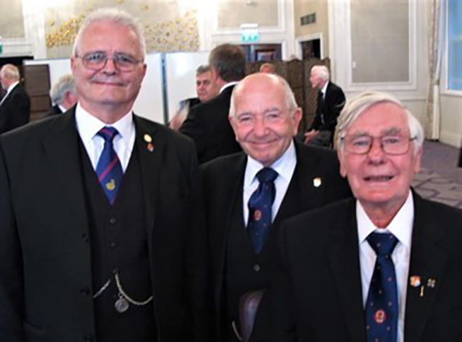 Right on time at 1.30 pm the procession into the Temple (including our own PGM of course) began and once it was concluded on this occasion with the Pro Grand Master M.W. Bro. Raymond John Smith taking his seat he welcomed everyone and thanked all for their attendance. Then it was time for the Agenda to be followed as per the Summons, the meeting was quite lengthy due to the loss of meetings over the past eighteen months but I’m sure everyone took that into account and really showed their support for all those receiving offices and appointments. Just before the meeting concluded the roof was raised with a rousing version of the National Anthem sung by all present and that was it all over, slowly everyone made their way to the robing rooms/cloak rooms before going for a well-earned drink and some friendly chat before taking up their allotted places for dinner in the Connaught Rooms. |