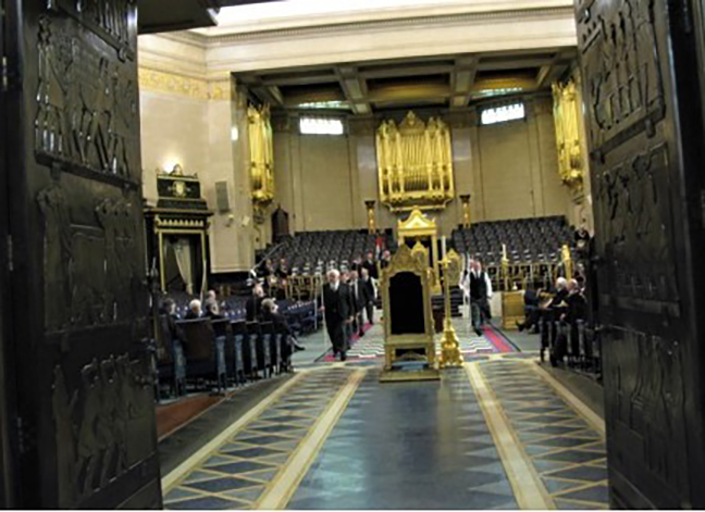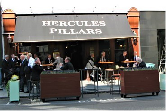 Arrived in London jumped in a Taxi and were soon at Grand Lodge, there were still some Corona Virus precautions in place but nothing too restrictive so as to spoil the visit. Once the cases were stowed safely in the cloakroom we signed in and then made our way to the Hercules Pillars one of two watering holes across the street used by Masons on these visits, the other being the George. Before too long after a couple of drinks, non-alcoholic it was time to take up our seats in the Grand Temple. |