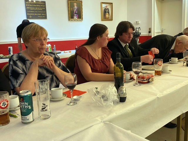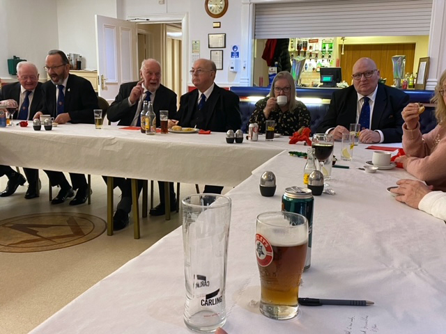 After the Master, Worshipful Bro. Stephen Thackrah had been declared Master Elect for the ensuing year and W. Bro. Peter Walker PProvGJW had been declared Treasurer. all the business was completed, the Lodge was closed, and we made our way down to the bar and dining room to join the Ladies and friends. |
