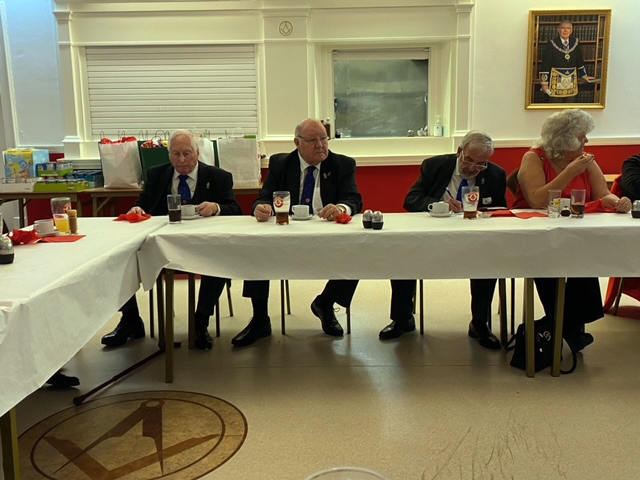 While the buffet was being readied the Lodge Secretary W. Bro. Tony Thackrah PProvGJW, explained where the proceeds from the raffle were going, with a short talk on Blue Skies the charity arm of the very busy Blackpool Victoria Hospital, they are raising funds to provide 1000 new information head boards for over the patients beds, in a colour coded form so patients details were not viewable to all. They cost £23-00 pounds each, plus the magnets. |