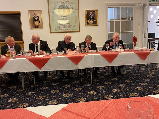 However things did not start well, as we greeted by the Director of Ceremonies, W. Bro, Bill Swindlehurst, who told everyone as they arrived that the Secretary had just had a text an hour before telling he'd proved positive for Covid-19 and he'd been in the Lodge room in the morning setting things up, so the Lodge room had been sprayed and wiped down and if you weren't happy to go in, to go home! |