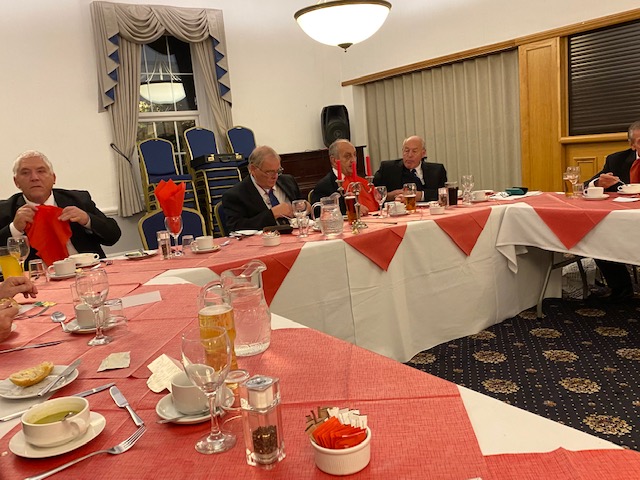 At the festive board, a tasty meal of Stilton soup, classic shin of beef and sticky toffee pudding, was enjoy by all. |