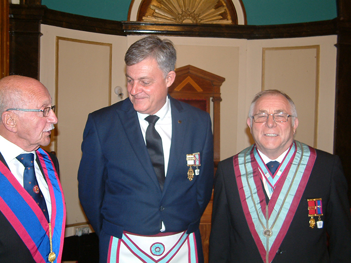 With the advancement over it was time to elect a new Master. Yes, the Lodge had just elected one and put him place but it was now time to move on to the next one. There being only one nominee for Master, WBro Jack Poller, PProvGSD, he was declared Master elect. Jack will be installed at the November meeting, (which will also be a Provincial Team visit). During the risings the PGM’s Special Representative, WBro Mike Winterbottom, PGSD, presented Grand Lodge certificates to Bros, James Pape and Connor Grimes. Congratulations were also given to the Lodge secretary WBro Richard Wilson on his promotion to Past Grand Junior Deacon and to WBro Roy Ashley on his appointment to Past Provincial Grand Senior Deacon. When the Lodge was closed it was time for dinner. To start the new season with a new member is a very good start. All in all a good night and it is good to be back. |