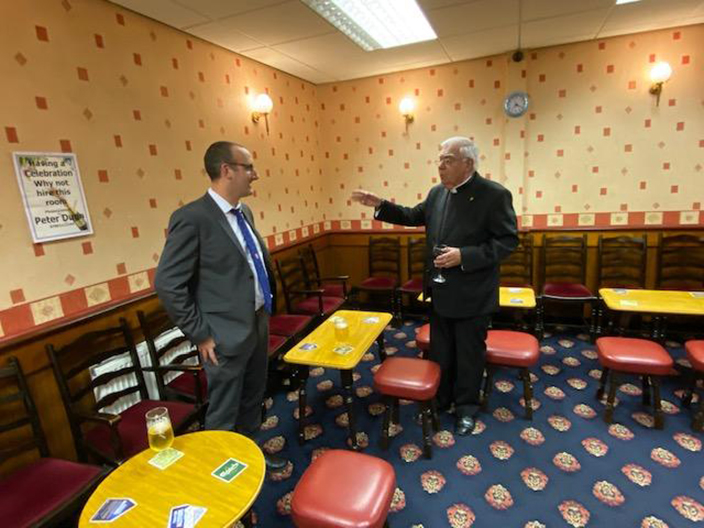 The Chaplain W. Bro. Stephen Leach making a point to W. Bro. Steve. G |