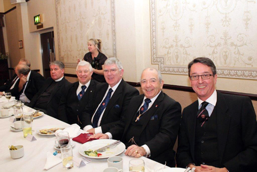 Peter Rollin gave us a fascinating account of the workings of 86 St James, and addressed some recent issues in a very open and honest manner. His presentation was met with great acclaim. The Installation ceremony was successfully concluded, and 136 of us proceeded to dine, a magnificent number which really filled the wonderful dining room at Leyland. | |