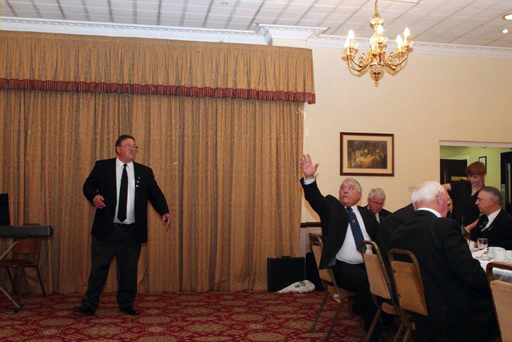 After dinner Giles did mention other friends, including Mike Beesley, also a past DC of the lodge, who does a first class job on our Provincial website, keeping it up to date and extremely informative. Paul Snape was also in attendance, the Special Representative who looks after no less than 8 local Mark Lodges and 6 RAM Lodges for our PGM. Steve Clarke, Deputy Sword Bearer for the Province was also there, helping Joe O'Brien, who has a bad back at present, by running the Provincial tie, badge and cufflink sales. Howard Emmett, Provincial Charity Steward, advertised the Children's Christmas party at Leyland on December 8th, which is being organised by Paul Snape, details available on the website. | |
