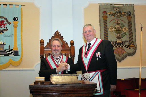 Leyland Masonic Hall was the venue for the event which saw Stewart Seddon install his successor, Bro Howard Lilley, into the Chair of Aeon Lodge. Stewart, the hard-working and popular Chairman of the Leyland and District Craft Group, performed in an absolutely exemplary manner. |