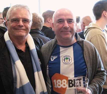 Soon found out why, half a pint £3.90, a bottle £4.20 and if you wanted a pint of Cider I think you had to give them your credit card!! Ah well I said just get a pint and four straws as it is nice and warm in here and the Villa vs Chelsea game was on a wide screen TV. Four pints later nobody seemed to care anymore we were even having photo’s taken with a couple of Wigan supporters, a bit like the Mark Degree really, City supporters are very friendly. | |
