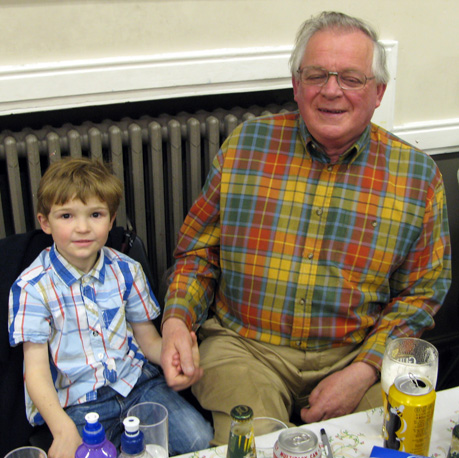 There was a fine supper arranged which included Traditional Hot Pot, mushy peas, red Cabbage and beetroot followed by Apple pie and cream, plenty for all. (seconds/thirds for some !!) PGM with Grandson Above Right | |||
