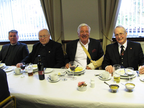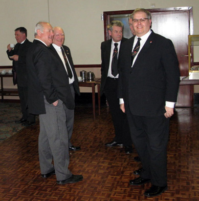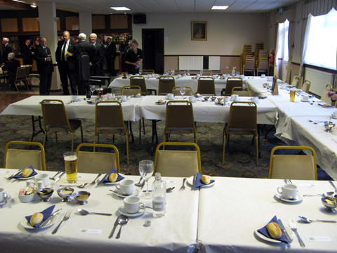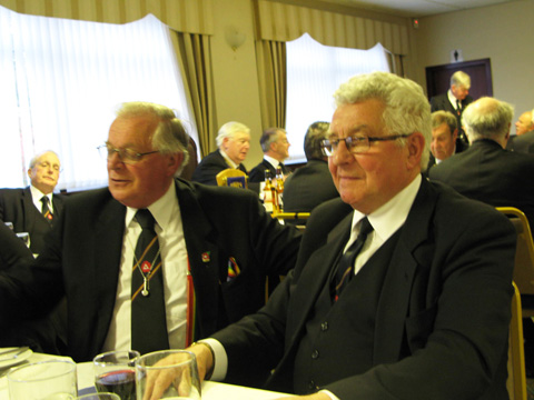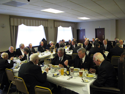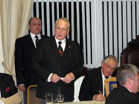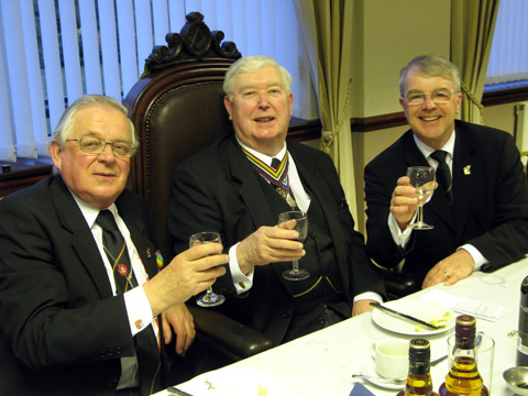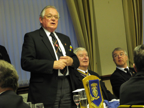 Following the work in the Lodge everyone gathered in the main hall for a wonderful meal as is always served up by Mark Rainsford the resident Chef and his staff. The usual Toasts were given and well received and some excellent speeches and responses given, with one especially of note from Ian Nairn Asst PGM to the PGM. | |