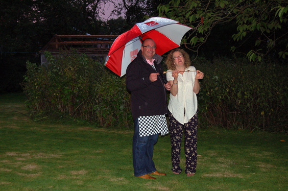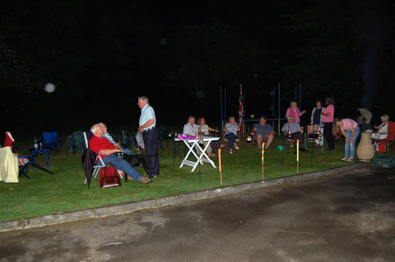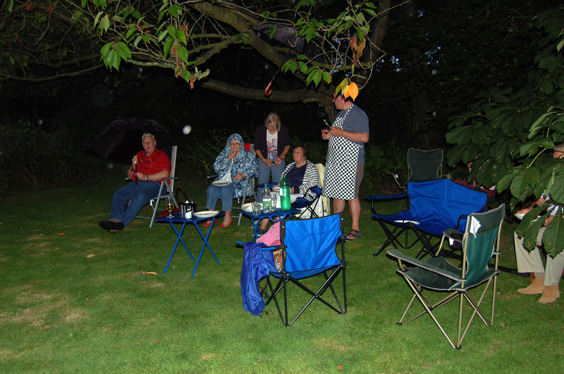 The PGM and Graham, thanked everyone for all the hard work that they had put into the event and Adrian served up the food that had been prepared during the day by Pauline, Lydia and Graham. As the sun went down a shower arrived but with people heading for the kitchen (where the sweets were being kept) or just for shelter under the trees, the enjoyment continued and all resumed back to the lawn for the evening when the rain stopped. | |