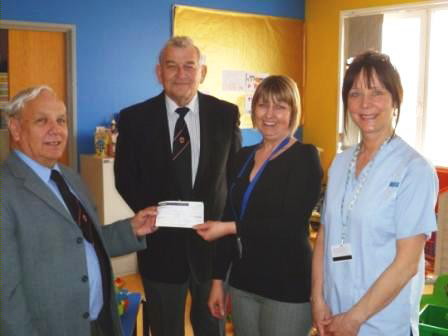 Ken Jackson, who had organised the fund rising, accompanied West Lancashire Mark Mason Charity Steward Alan Jones to the ward to present the cheque to Ward Manager Heather Wood and staff member Julie Alberry. |