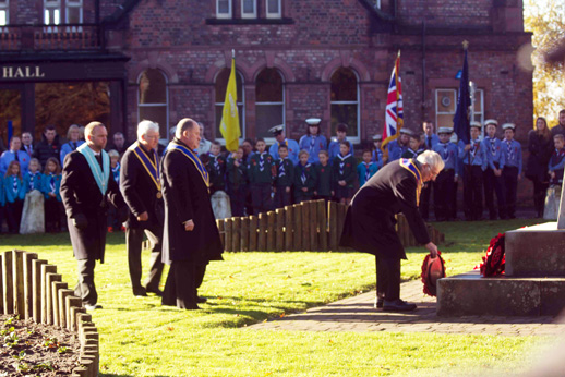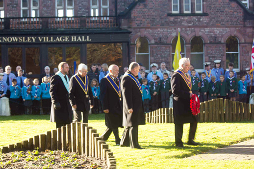W.Bro Mel Riley accompanied my several prominent freemasons of Knowsley Village laying the wreath at the Cenotaph in the presence of Lord & Lady Derby |