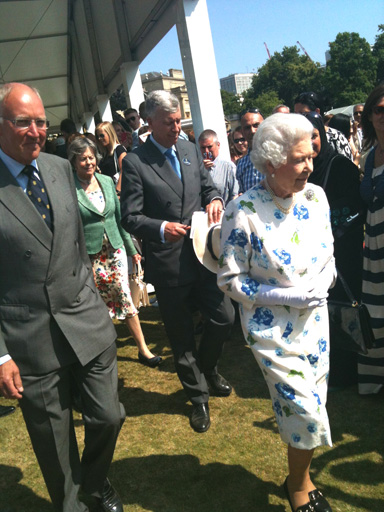 The Queen together with the Prince of Wales and the Duchess of Cornwall, Princess Anne, the Duke of York and other Royal Family members were all present. The afternoon held in glorious sunshine was thoroughly enjoyable with everyone endeavouring to speak to one of the Royal Party if requested so to do. It was reasonably informal with the royals walking around and stopping to talk to various warrant holders and guests. | |