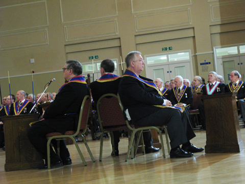 All listen carefully as the PGM assisted by the Inner Guard and Wardens opened Provincial Grand Lodge. | |