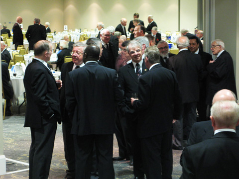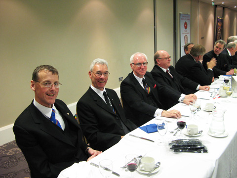 Following the retirement processions the brethren sojourned to the bars prior to dining on a very pleasant meal. The pictures which follow are testament to the enjoyment of those who stayed for the meal and require no further comment. | |
