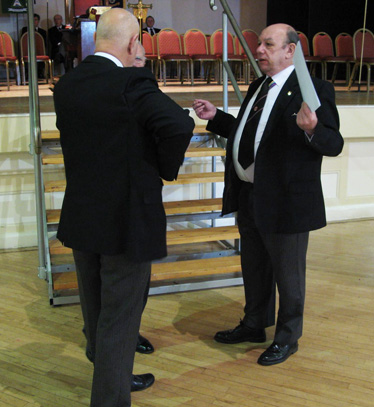 David Emerson discusses procedures whilst the Wardens and and Overseers patiently wait. The RAM Commanders are rehearsed and I get to grips with the sound desk in the warmest room in the house. | |