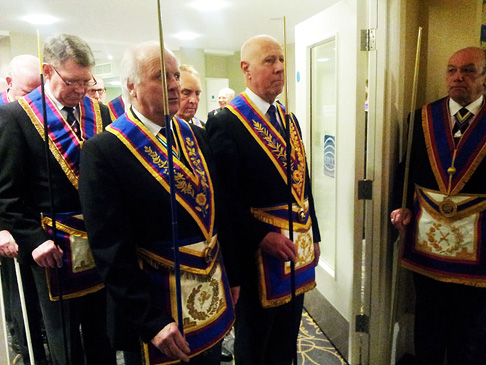 Practice is over the processions start and the PGM is ready to enter, The Acting Grand Officers form a separate procession and are received with acclaim, as was the boss! | |