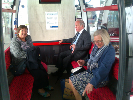 Feeling elated my wife Lynne arranged for us to go from the O2 arena (the Millenium Dome) to Royal Victoria by the Emirates airway. This is a cable car ride way above the Thames, with stunning views. We dined in one of the many eateries in the 02 arena. Peter Connolly. | |