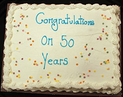 More than 80 brethren travelled from around the Province to attend the celebration meeting of Peter Connolly to mark 50 years of service to Freemasonry at Old Lerpoolian Lodge No 9270 which meets at Woolton Golf Club in Woolton.