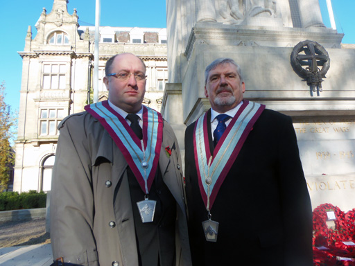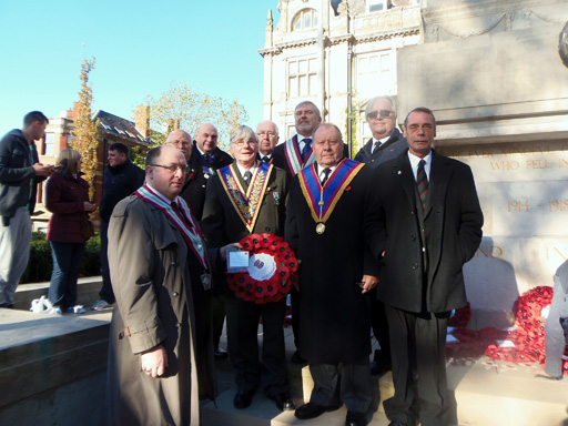 After the service of remembrance by the vicar of Preston and the two minutes silence, the wreaths were laid. Bro. John Sarti W.M. Progress Mark Lodge laid our wreath on behalf of the two Mark Lodges | |