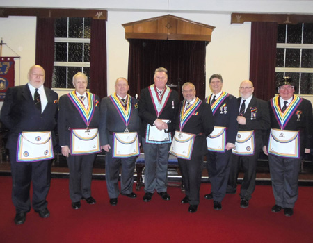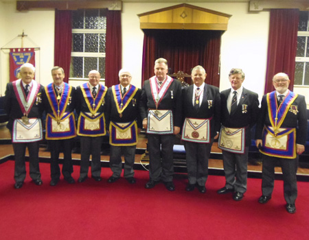 The meeting was well attended, with Worshipful Masters and Commanders from seven Mark and RAM Lodges in attendance, pictured above and listed right. | |