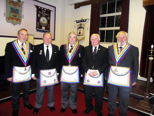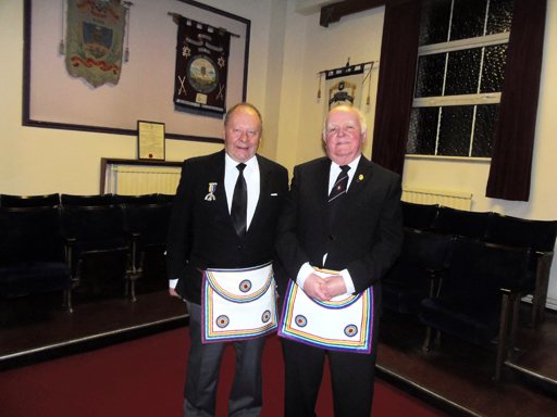 The Lodge was equally delighted to welcome to the Lodge R.W. Bro. Tom Jackson Member of the Grand Masters Royal Ark Council. And W.Bro Rod Bennison R.A.M.G.R. an honorary member of the lodge. | |