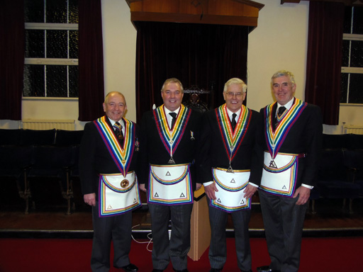 Pictured Left: V.W.Bro. Keith Beardmore, Dep. PGM, W.C. Steve Bolton, Installing Commander Bob Dickenson and V.W.Bo. Paul Snapem PGM's Special Representative