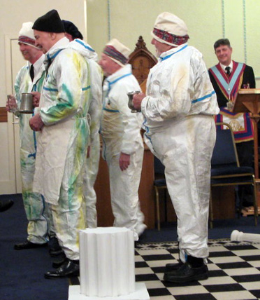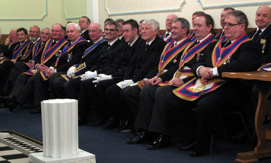 On taking charge of the proceedings again the W.M. Tony called off the Lodge so that Craft Masons could also be admitted to enjoy the proceedings. Brethren I’m not here going to tell you much about the Legend of Rosslyn or the Apprentice Pillar as portrayed to us as it would spoil your own enjoyment of witnessing this absolutely wonderful presentation, needless to say that if you ever get the opportunity to attend the same display do not miss it. | |