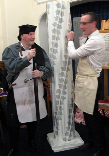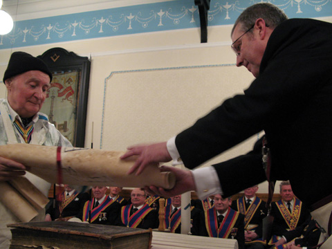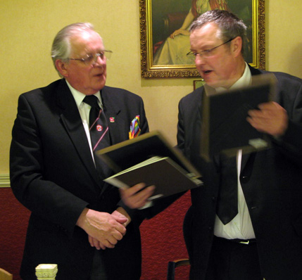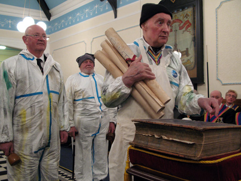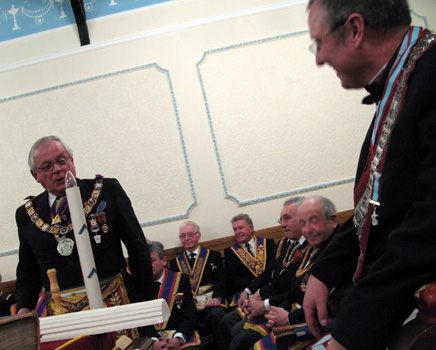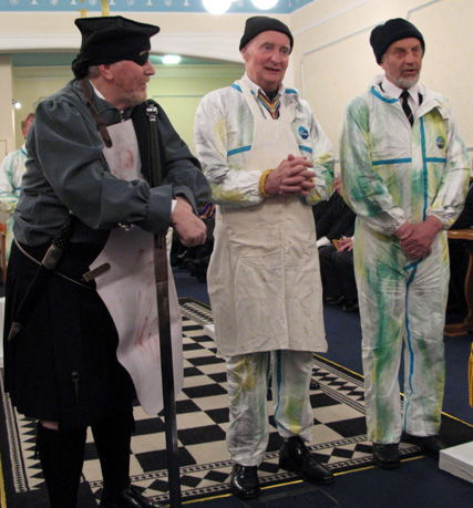 The Team were lead in excellent style by W.Bro.John D.Clarke PGJO who actually wrote the Presentation booklet for the Roslyn and Apprentice Legends which has the accompanying oratory, the players and even shows how to display it in your own Lodges, this can be purchased for £2.50 from Prince Setanta Lodge, and I can tell you is great value. | |
