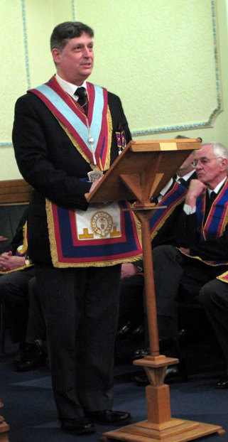 The Lodge was prepared for the meeting and looked resplendent with its own Banner and many traditional pictures on the walls, it opened by the WM Bro Tony Thackrah at approx 6pm and dealt with its usual business before the RW Prov Grand Master Peter Connolly entered supported by a large number of Grand, Provincial and Acting Provincial Officers. Having been welcomed on behalf of all the members by the WM, the PGM accepted the gavel for a short period to say how much he and his officers were looking forward to the evening’s presentation, The Legend of Rosslyn Chapel and the Mystery of the Apprentice’s Pillar. | |