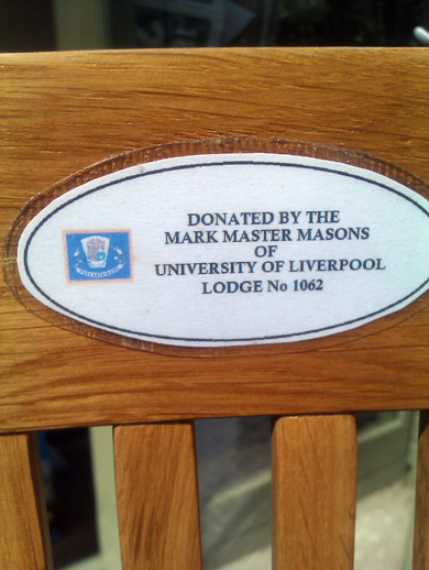 Also presented on behalf of University of Liverpool Mark Lodge were 3 overseers' chairs, of modern design which particularily suited the Garden Room. | |
