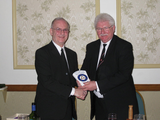 Under normal circumstances the transfer would have been to the worshipful Master of Friendship Mark Lodge, but at the last moment W. Bro. Tom Holt was prevented from attending the meeting. As a result, the Keystone was presented to the Master Elect, W.Bro. Terry Tasker. | ||