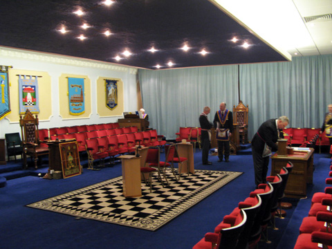 At around 11am around 50 Brethren had gathered for the meeting, these were made up of previous Lodge members and a host of new members who would be joining at this special meeting. The Lodge was opened in traditional manner at 11.30am and following this the RW PGM Bro Peter Connolly entered accompanied by Grand and Provincial Officers, he was offered the gavel by the WM Thomas Prince and on this occasion he accepted it. | |