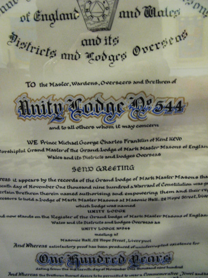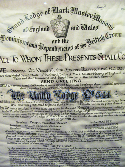 On Mon 14th Jan 2013 a meeting was held at the Masonic Hall, Leyland to discuss the possibility of forming a new Lodge for Acting and Past Wardens of the Province of West Lancashire to under the name of Unity Mark Lodge No.544, the Brethren gave unanimous approval. |