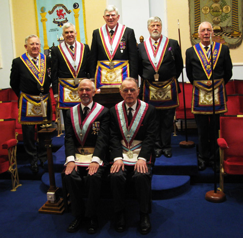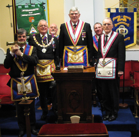 The Deputy PGM Keith Beardmore replaced the PGM in the Chair of Adoniram, with the Provincial Wardens occupying their respective chairs, to Invest VW Bro James Anthony Harrison as the new WM of Unity Lodge, following this the appointment of officers took place and one unusual Tradition of note, whoever is named as Steward at the Installation meeting is in fact the WM Ellect for the following year. Several other items of business were dealt before the PGM retired from the Lodge. | |