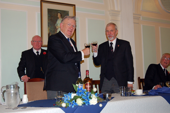 The Worshipful Master WBro R.F. Wilson takes wine with his |