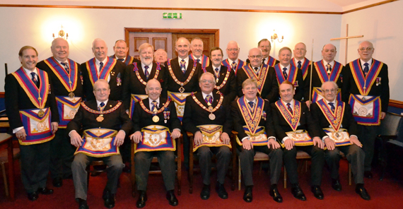 The Provincial Grand Master and his team of acting officers descended on Westhoughton Mark for their installation ceremony in big numbers. In addition to the Senior Warden of the Province Giles Berkley, accompanied by his colleague the Junior Warden, Peter Hegarty, who is a member of the Lodge, no less than 25 other acting officers attended for the occasion. There was also 18 Grand Officers present at the meeting and at least the same number of Mark Master Masons including several visitors.