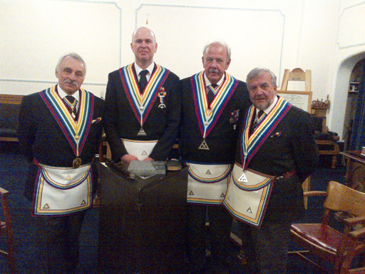 Picture above shows: V.W. Bro Michael Clark, W.Bro Anthony Cross, W. Bro Mel Cross and | |
