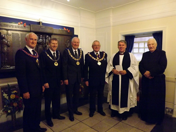We were both wrong - it is as originally envisaged a truly generic and Masonic memorial. This is clearly demonstrated today by the presence of our R.W.P.G.M. from Craft Bro. Peter Hosker and the W.M. of Allan Pooley Mark Lodge W.Bro. Mark Dimelow, thinly disguised as our A.Pr.G.M. Craft. From the Royal Arch, E.Comp Stanley Oldfield is our third Provincial Grand Principal & E.Comp Paul Shepherd our Assistant. Orders of which the Mark Brethren are very proud to be members.