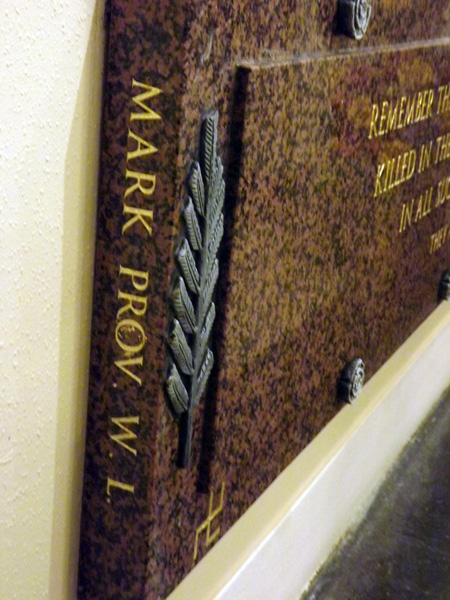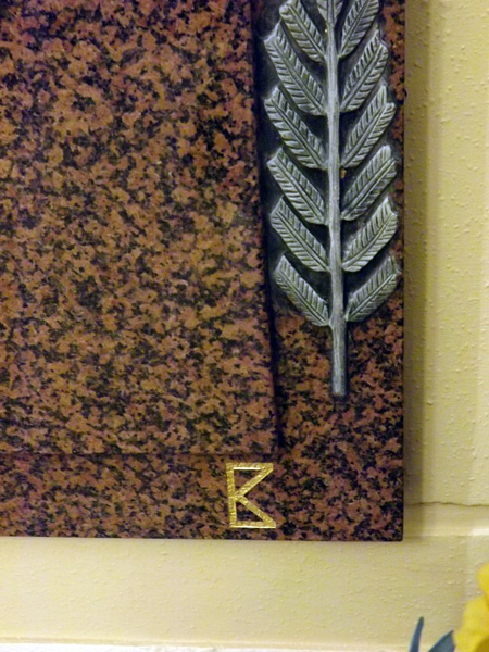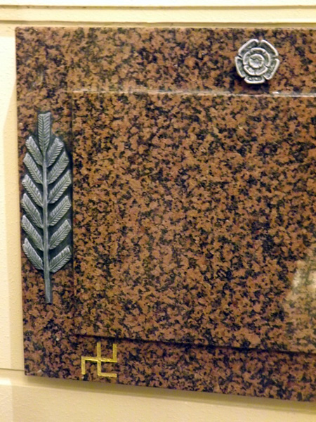 The memorial itself [and I use Bro. Ken's words] is a "Balmoral" granite panel, to match the existing columns. On each side are stylised fronds of acacia to suggest palm leaves representing victory out of sacrifice.