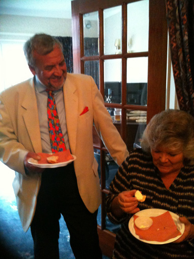 Jane Beardmore attended and brought excellent shortbread biscuits to go with the Strawberries and Ice Cream, desert for the wonderful buffet high tea supplied by Vera, assisted by David Bell (Prov.A.G.D.C) and his wife Liz. | |