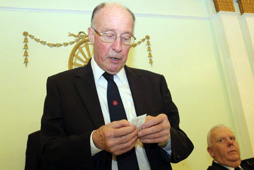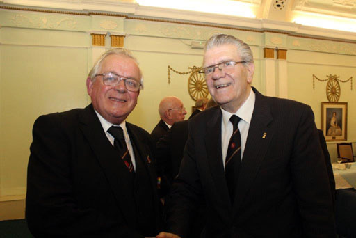 Tom Marlowe, SW of the Lodge was nominated as Worshipful Commander for the next year, to great applause, as was David Karsa for Treasurer. Tom Marlowe, a member of George Harradon and University Mark Lodges, was a former Mayor of Neston, and has keen interests in railways and engineering. | |