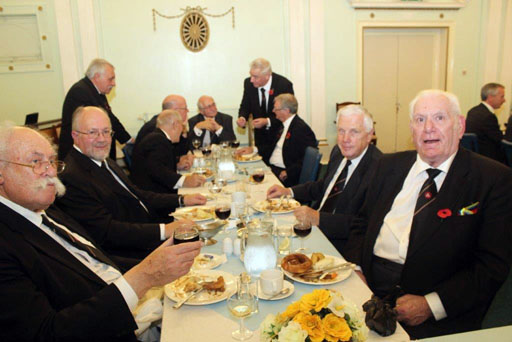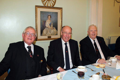 The festive board was, as ever, a wonderful and friendly event. Peter Connolly spoke at length in thanks of our longstanding Scribe, W Bro Bill Merry, RAMGR, who will step down at the next meeting in March. Bill was elevated on the 15th of October 1979, and was appointed Scribe on 31st March 1981. He served as JW, SW & Worshipful Commander in 1986/87/88, before being re-appointed Scribe in 1989, until next March, when he will have served the Lodge for 34 continuous years in office, 31 as Scribe, one of the most demanding jobs in any Lodge. Bill received a magnificent round of applause in recognition of his outstanding service. | |