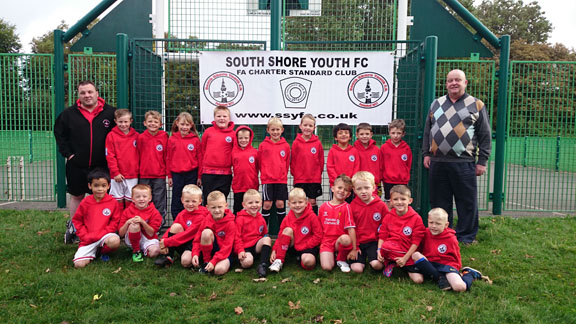 David and Liz Bell went on Saturday to watch South Shore Youth F.C training with the kit and apparatus funded by West Lancashire Mark Masons. | |