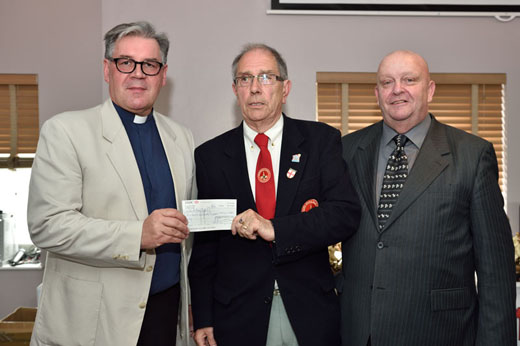 The pictures are of the Rev Graham Halsall and David Bell presenting the cheque to Ian Cooper who is President of the club, also David Bell with the 6,7 and 8 year olds, it is hard to see but the Mark Logo is on the right breast of the shirts, the logo can also be clearly seen on the Club's new banner which they display at their three training grounds. | |