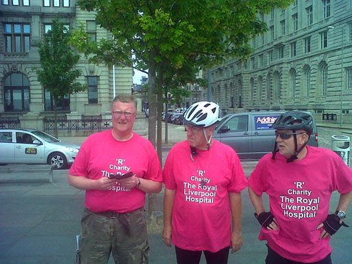 The riders cross Waterloo Road (the Dock Road) & pick up the canal again on William Jessop Way passing the Malmaisson Hotel, across the footbridge over Princes Dock & onto Princes Parade to the finish at the 'Liver Birds'..... at 1.50pm on 19th June 2014. Total time in the saddle 13 hours 41 minutes. | |