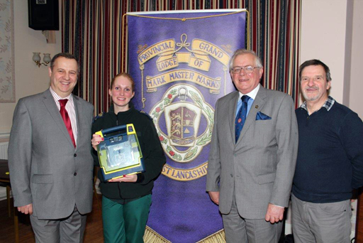 There was a great air of expectancy as we set out around 60 chairs at Chorley Masonic Hall for the second de-fib training session. We didn't know if we would fill all the chairs, as 7pm was approaching. In the end we had 75 people there, all keen to learn about this life-saving little box. The first session at Cleveleys was very well documented on this site by Bob Boal, and I urge you to read that article for more of the technical detail, which will necessarily remain the same for each demonstration. | |